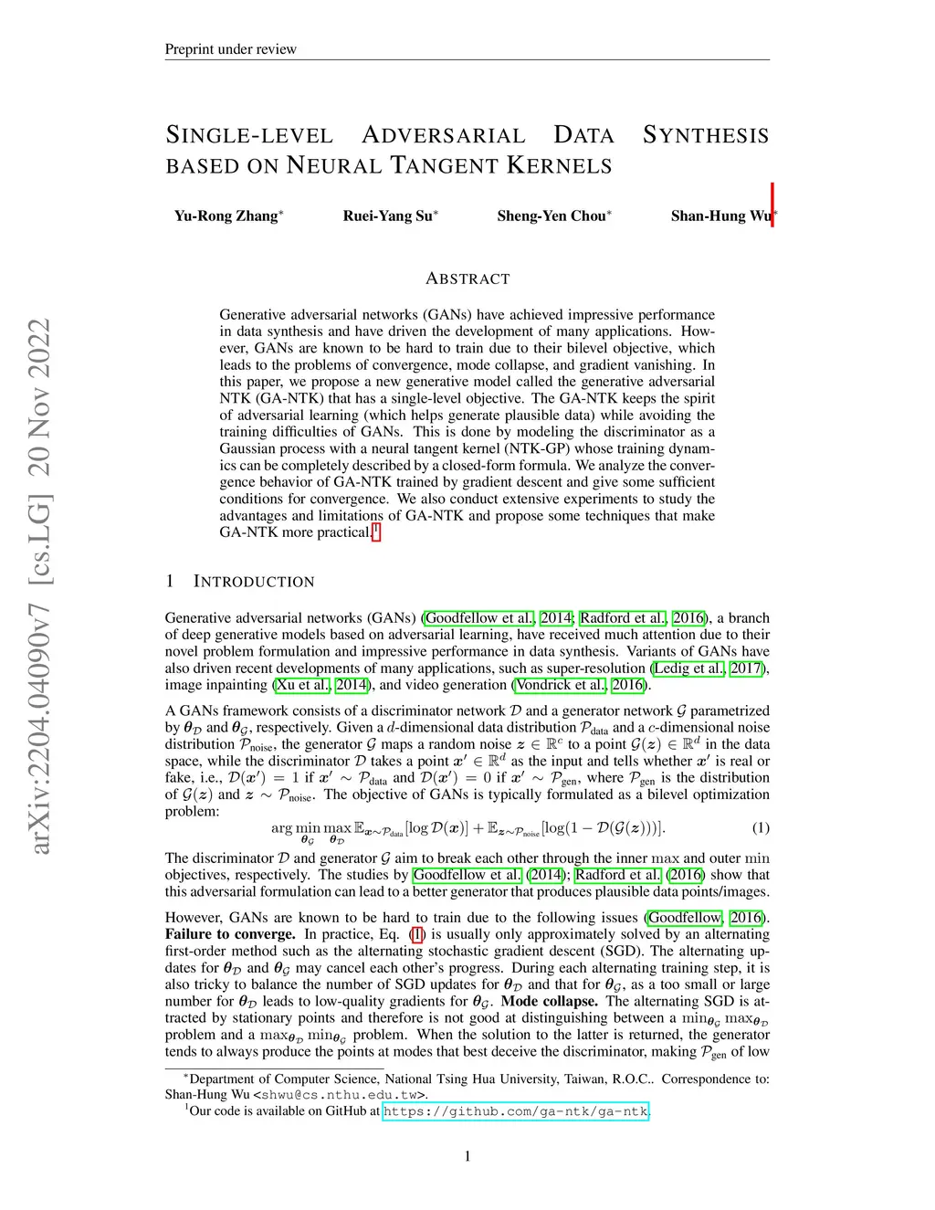 Generative Adversarial Method Based On Neural Tangent Kernels