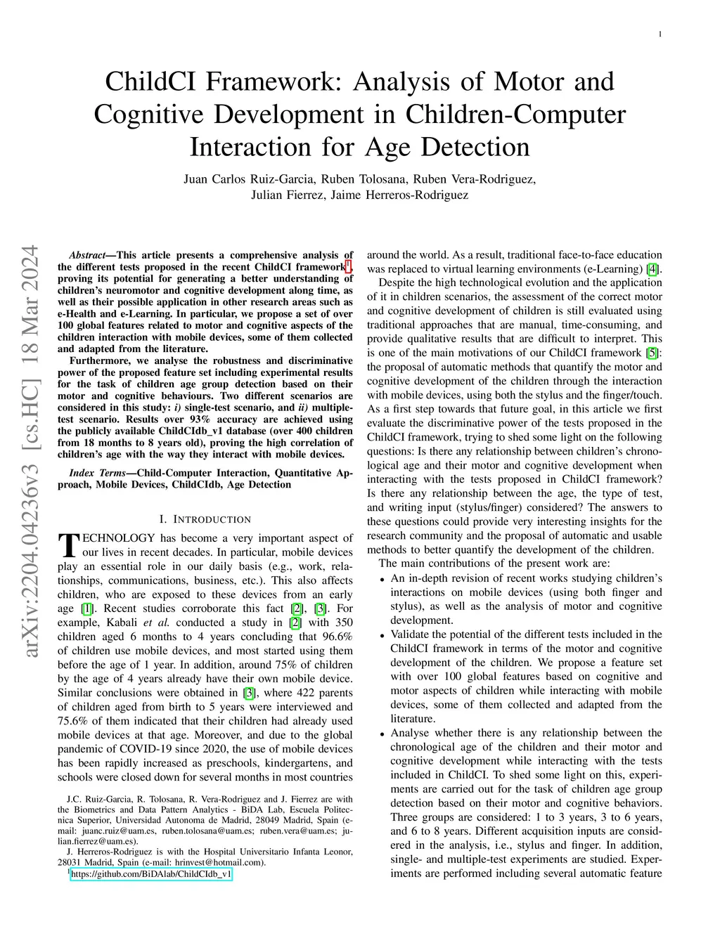 ChildCI Framework: Analysis of Motor and Cognitive Development in