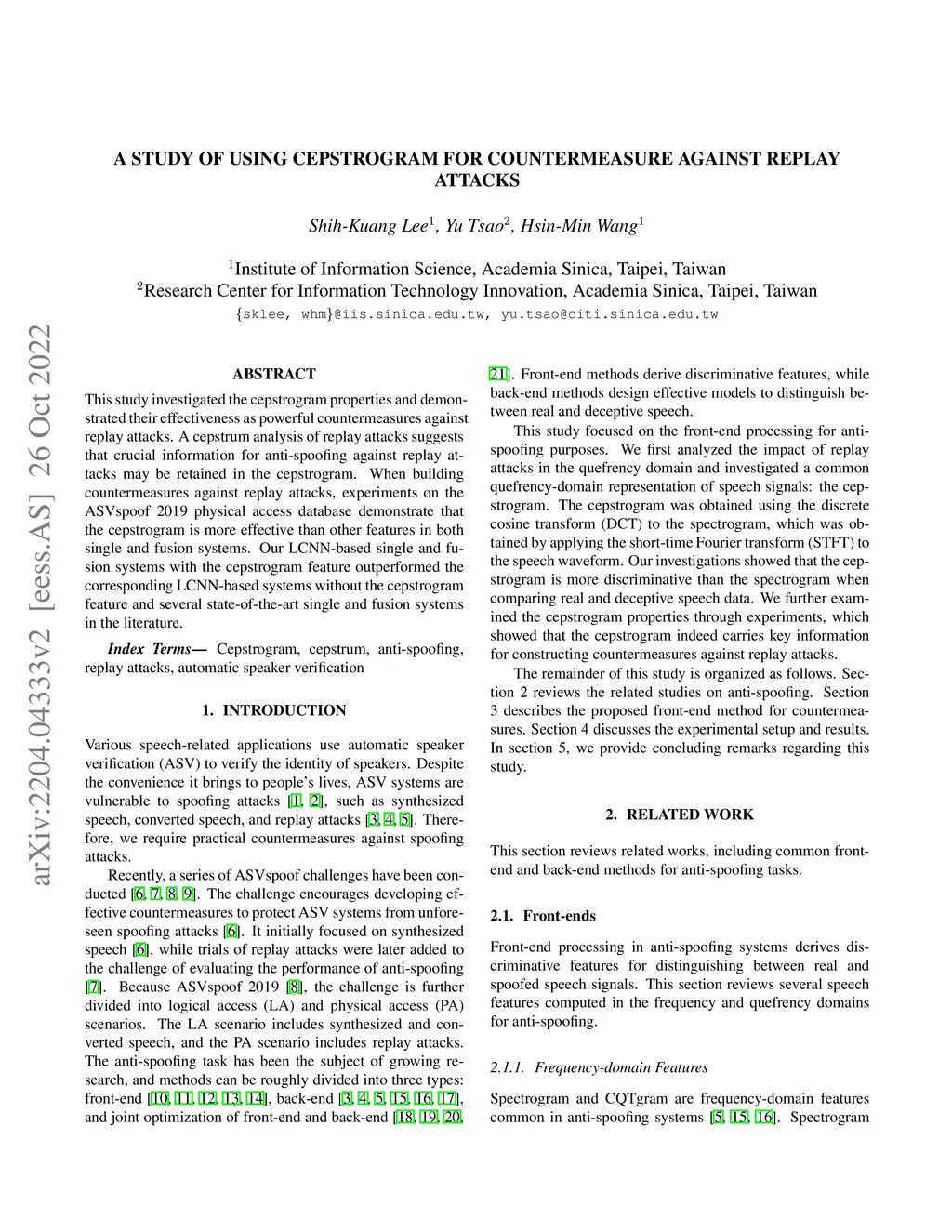 A Study of Using Cepstrogram for Countermeasure Against Replay Attacks