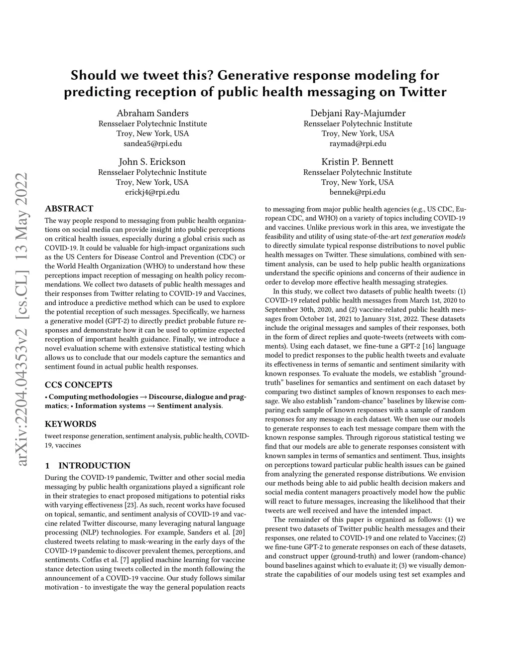 Should we tweet this? Generative response modeling for predicting reception of public health messaging on Twitter