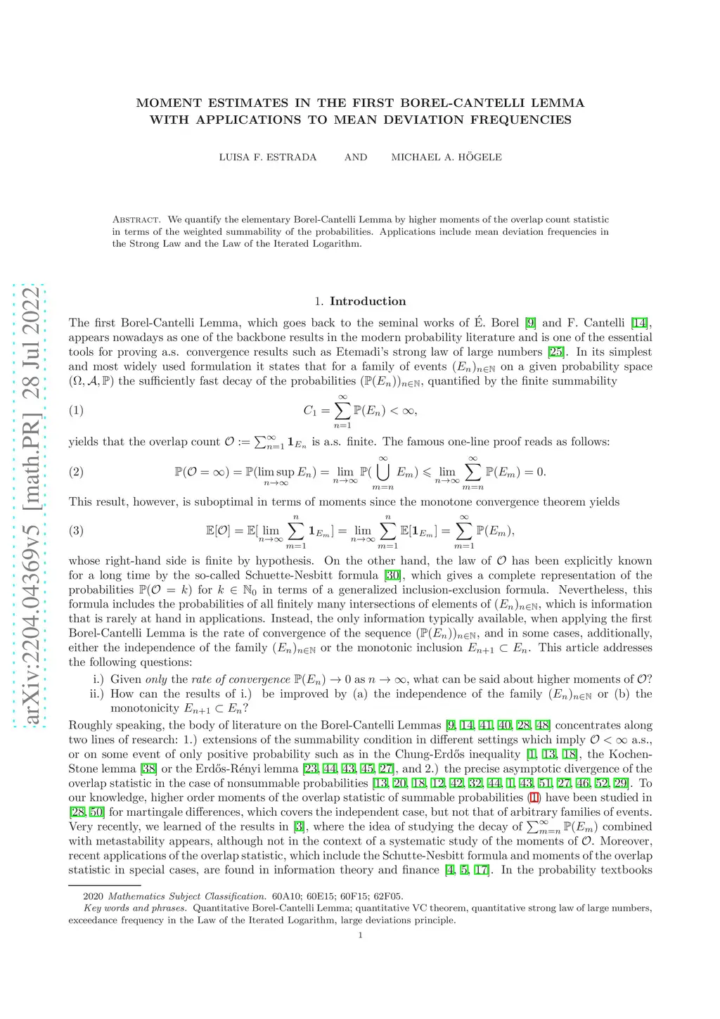 Moment estimates in the first Borel-Cantelli Lemma with applications to