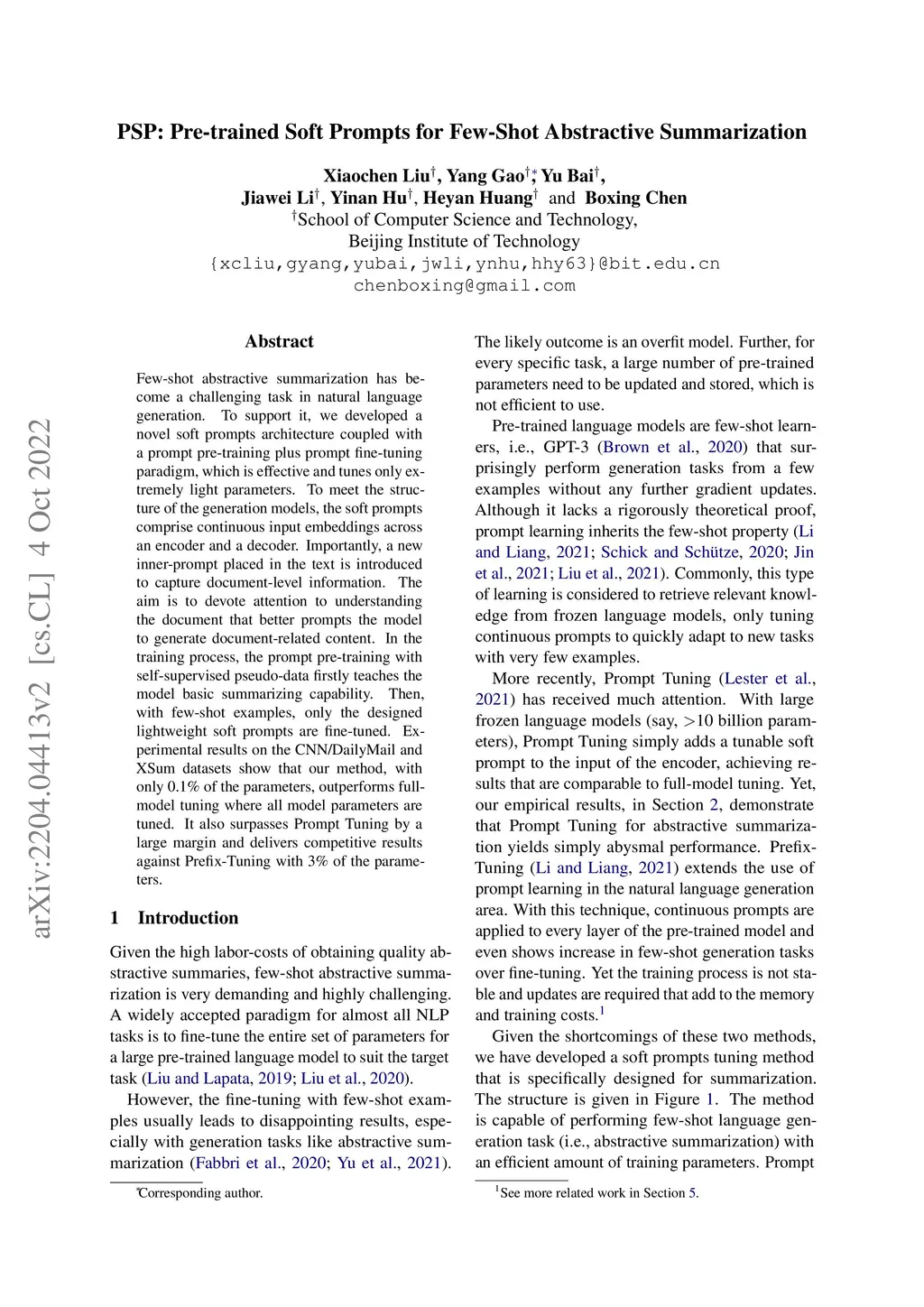 PSP: Pre-trained Soft Prompts for Few-Shot Abstractive Summarization