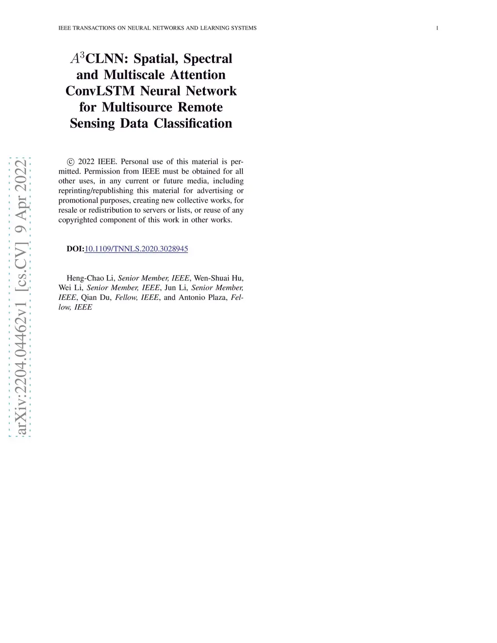 A3CLNN: Spatial, Spectral and Multiscale Attention ConvLSTM Neural