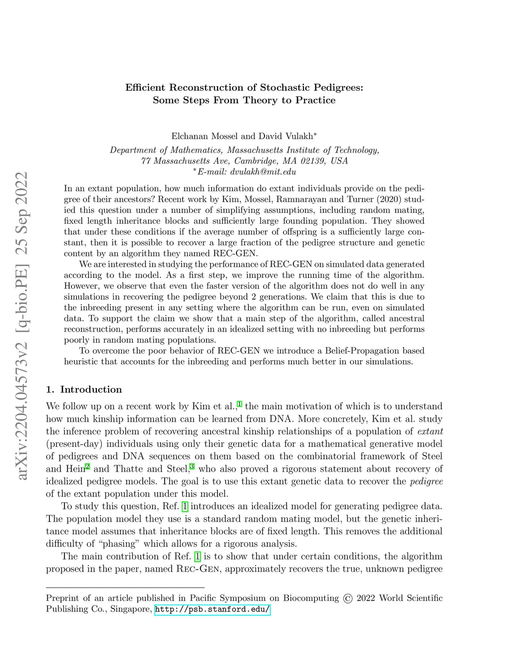 Efficient Reconstruction of Stochastic Pedigrees: Some Steps From Theory to Practice