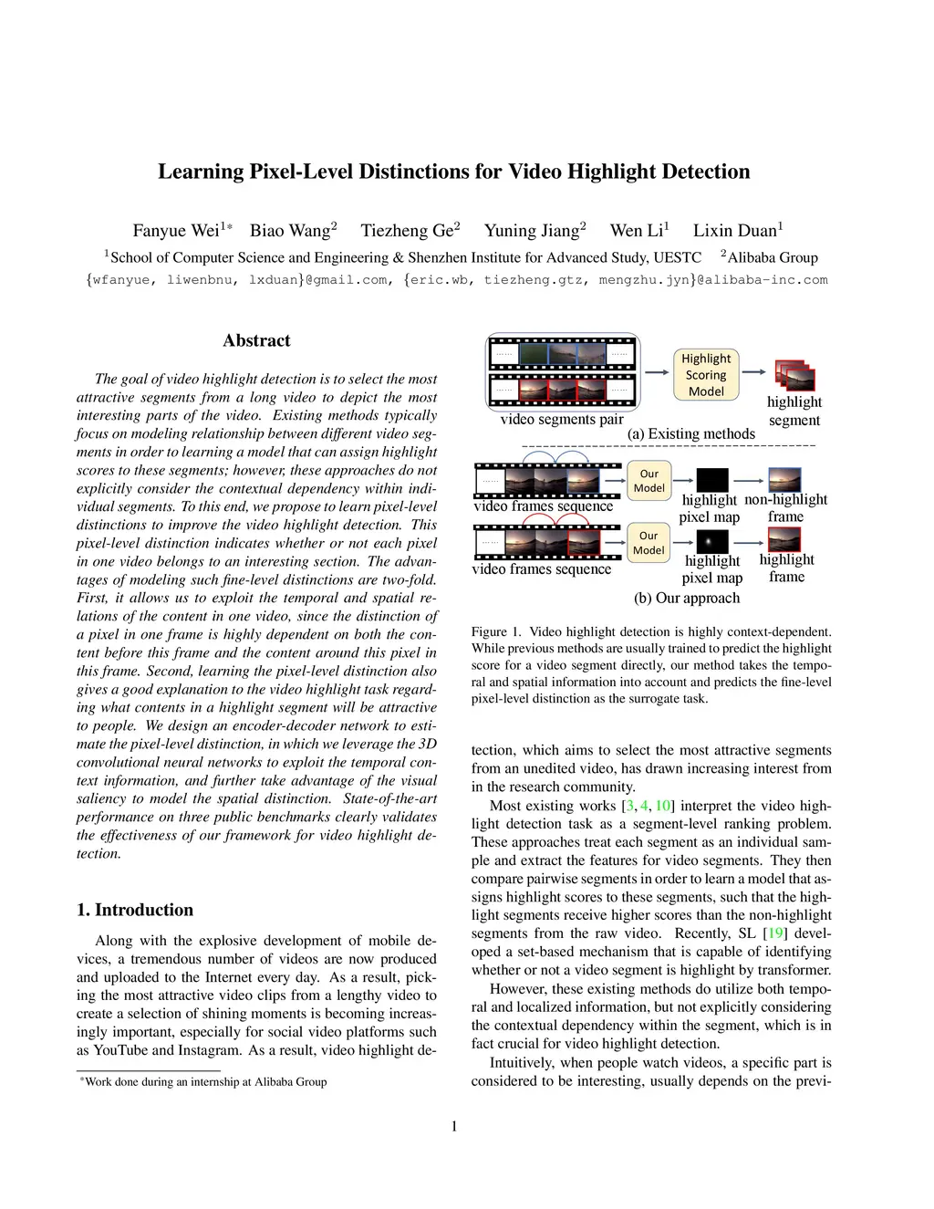 Learning Pixel-Level Distinctions for Video Highlight Detection
