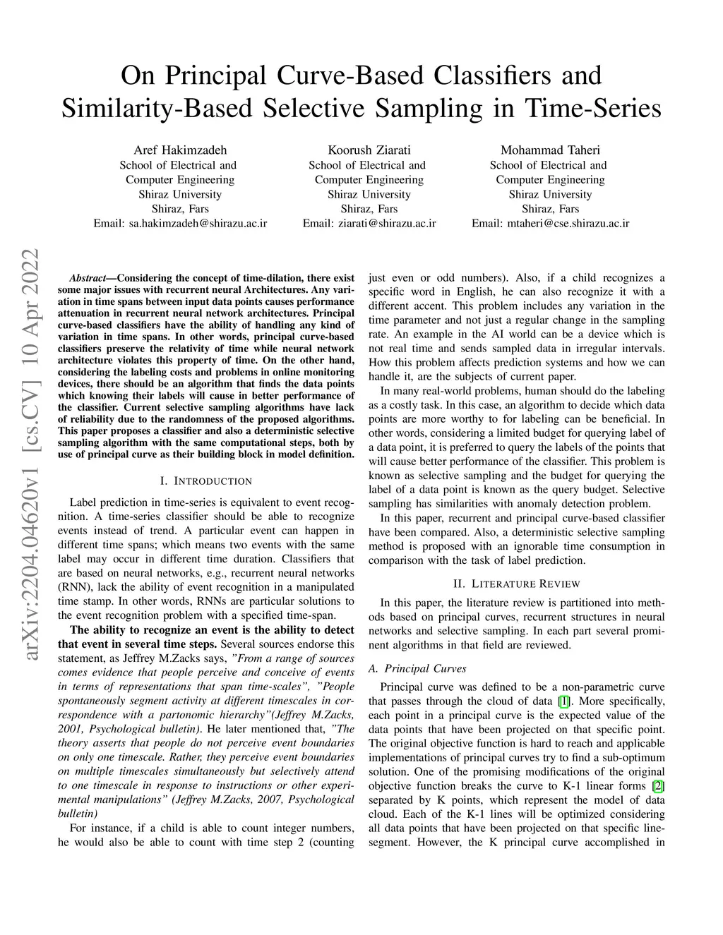 Considering the concept of time-dilation, there exist some major issues with recurrent neural Architectures. Any variation in time spans between input data points causes performance attenuation in recurrent neural network architectures. Principal curve-based classifiers have the ability of handling any kind of variation in time spans. In other words, principal curve-based classifiers preserve the relativity of time while neural network architecture violates this property of time. On the other hand, considering the labeling costs and problems in online monitoring devices, there should be an algorithm that finds the data points which knowing their labels will cause in better performance of the classifier. Current selective sampling algorithms have lack of reliability due to the randomness of the proposed algorithms. This paper proposes a classifier and also a deterministic selective sampling algorithm with the same computational steps, both by use of principal curve as their building block in model definition.