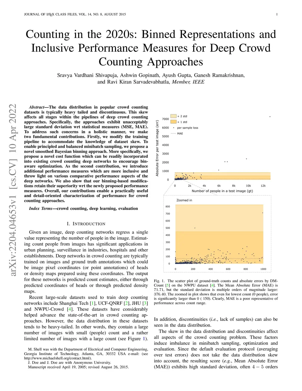 The data distribution in popular crowd counting datasets is typically heavy tailed and discontinuous. This skew affects all stages within the pipelines of deep crowd counting approaches. Specifically, the approaches exhibit unacceptably large standard deviation wrt statistical measures (MSE, MAE). To address such concerns in a holistic manner, we make two fundamental contributions. Firstly, we modify the training pipeline to accommodate the knowledge of dataset skew. To enable principled and balanced minibatch sampling, we propose a novel smoothed Bayesian binning approach. More specifically, we propose a novel cost function which can be readily incorporated into existing crowd counting deep networks to encourage bin-aware optimization. As the second contribution, we introduce additional performance measures which are more inclusive and throw light on various comparative performance aspects of the deep networks. We also show that our binning-based modifications retain their superiority wrt the newly proposed performance measures. Overall, our contributions enable a practically useful and detail-oriented characterization of performance for crowd counting approaches.