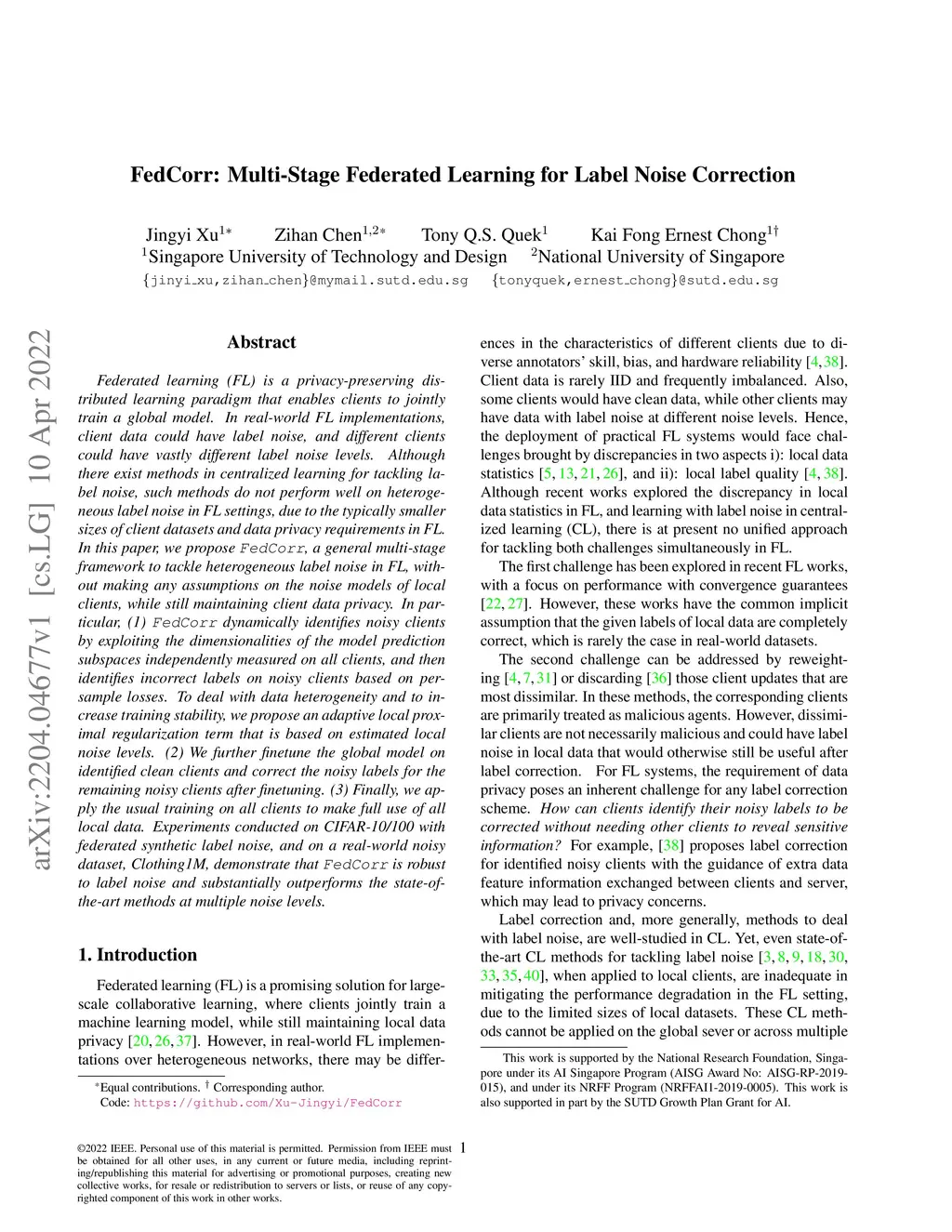 FedCorr: Multi-Stage Federated Learning for Label Noise Correction