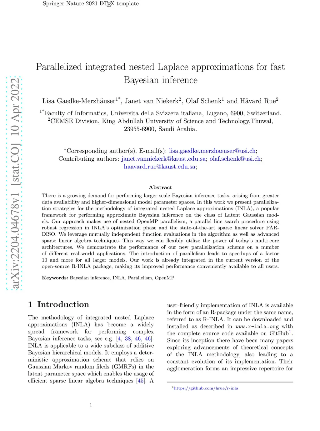 Parallelized integrated nested Laplace approximations for fast Bayesian