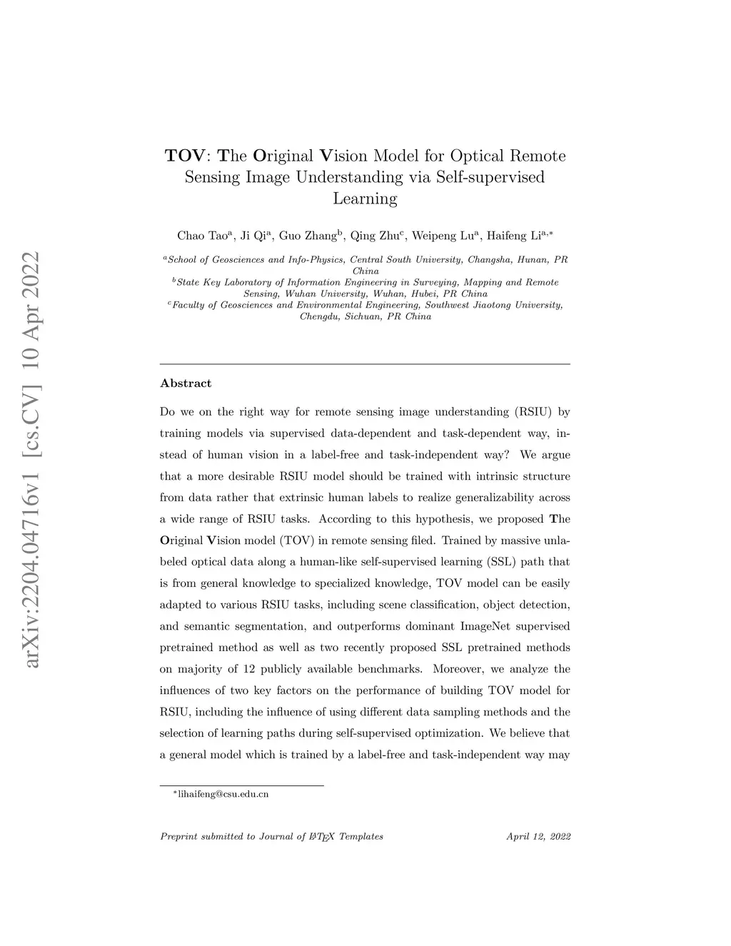 TOV: The Original Vision Model for Optical Remote Sensing Image