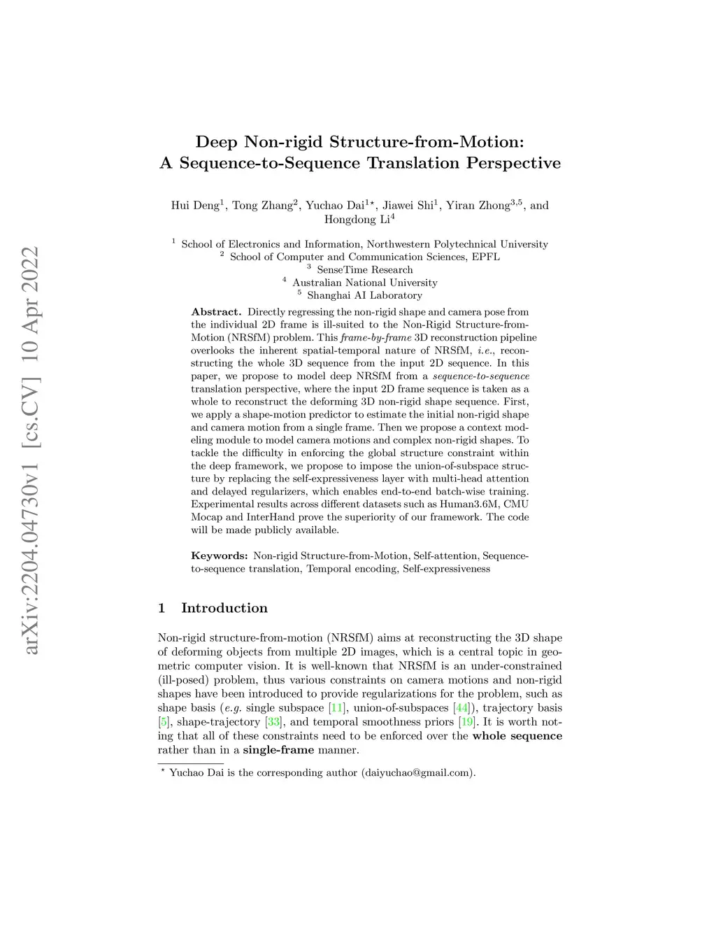 Deep Non-rigid Structure-from-Motion: A Sequence-to-Sequence Translation