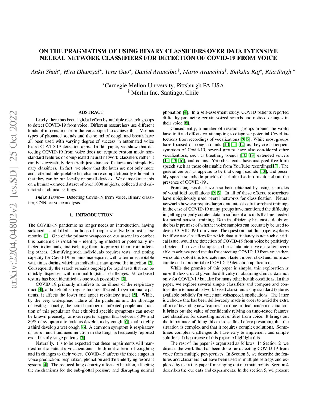 network classifiers for detection of COVID-19 from voice