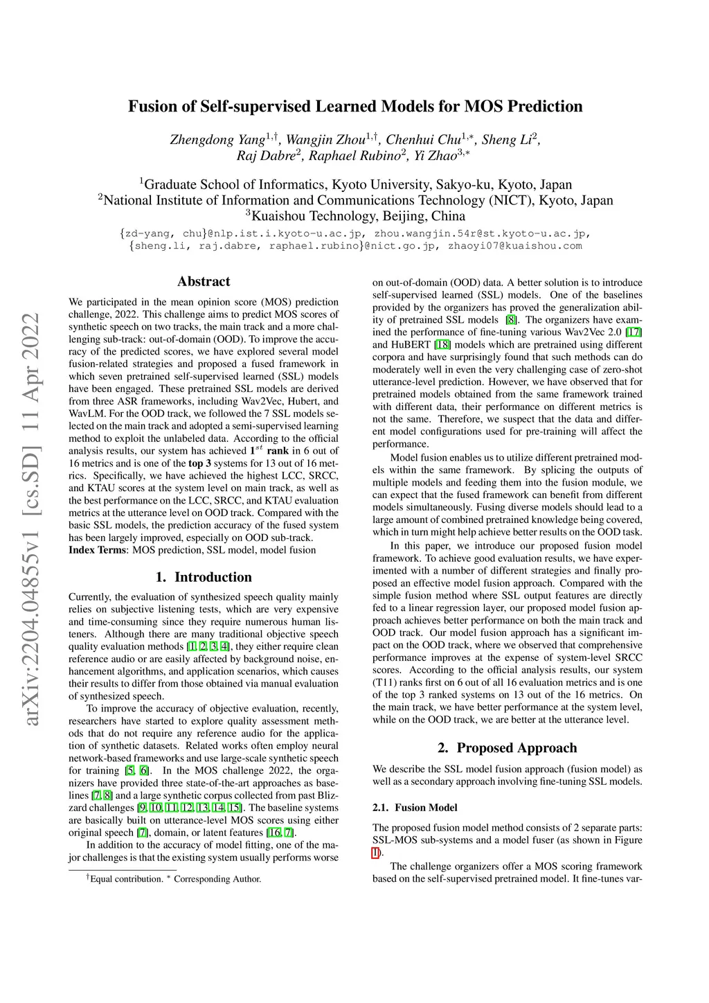 Fusion of Self-supervised Learned Models for MOS Prediction