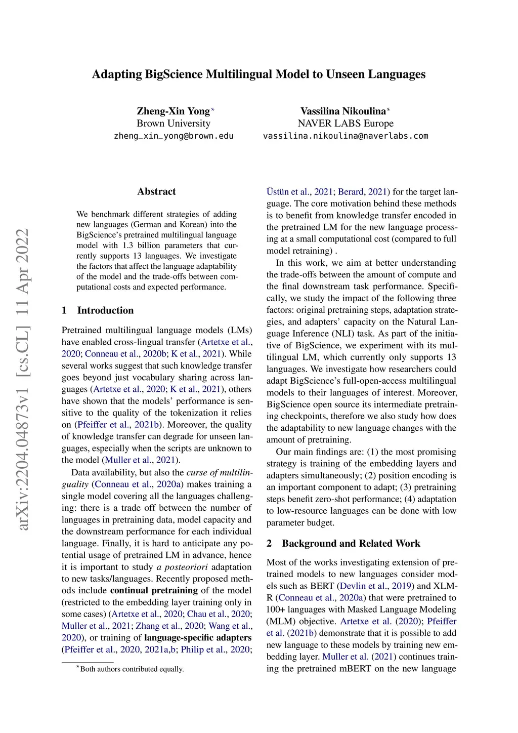 Adapting BigScience Multilingual Model to Unseen Languages