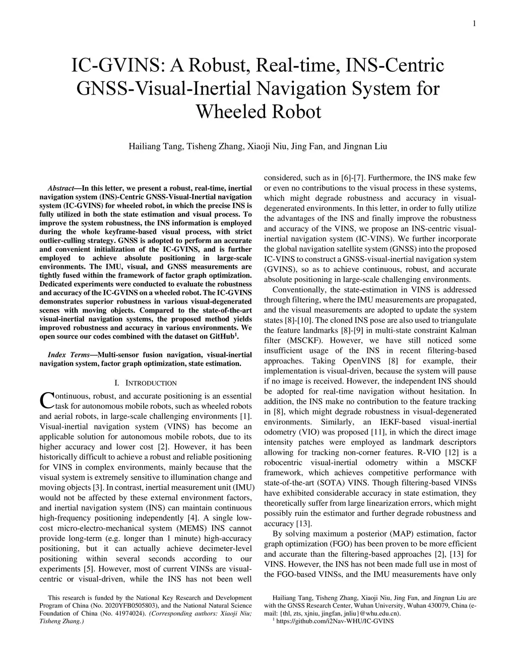 In this letter, we present a robust, real-time, inertial navigation system (INS)-Centric GNSS-Visual-Inertial navigation system (IC-GVINS) for wheeled robot, in which the precise INS is fully utilized in both the state estimation and visual process. To improve the system robustness, the INS information is employed during the whole keyframe-based visual process, with strict outlier-culling strategy. GNSS is adopted to perform an accurate and convenient initialization of the IC-GVINS, and is further employed to achieve absolute positioning in large-scale environments. The IMU, visual, and GNSS measurements are tightly fused within the framework of factor graph optimization. Dedicated experiments were conducted to evaluate the robustness and accuracy of the IC-GVINS on a wheeled robot. The IC-GVINS demonstrates superior robustness in various visual-degenerated scenes with moving objects. Compared to the state-of-the-art visual-inertial navigation systems, the proposed method yields improved robustness and accuracy in various environments. We open source our codes combined with the dataset on GitHub
