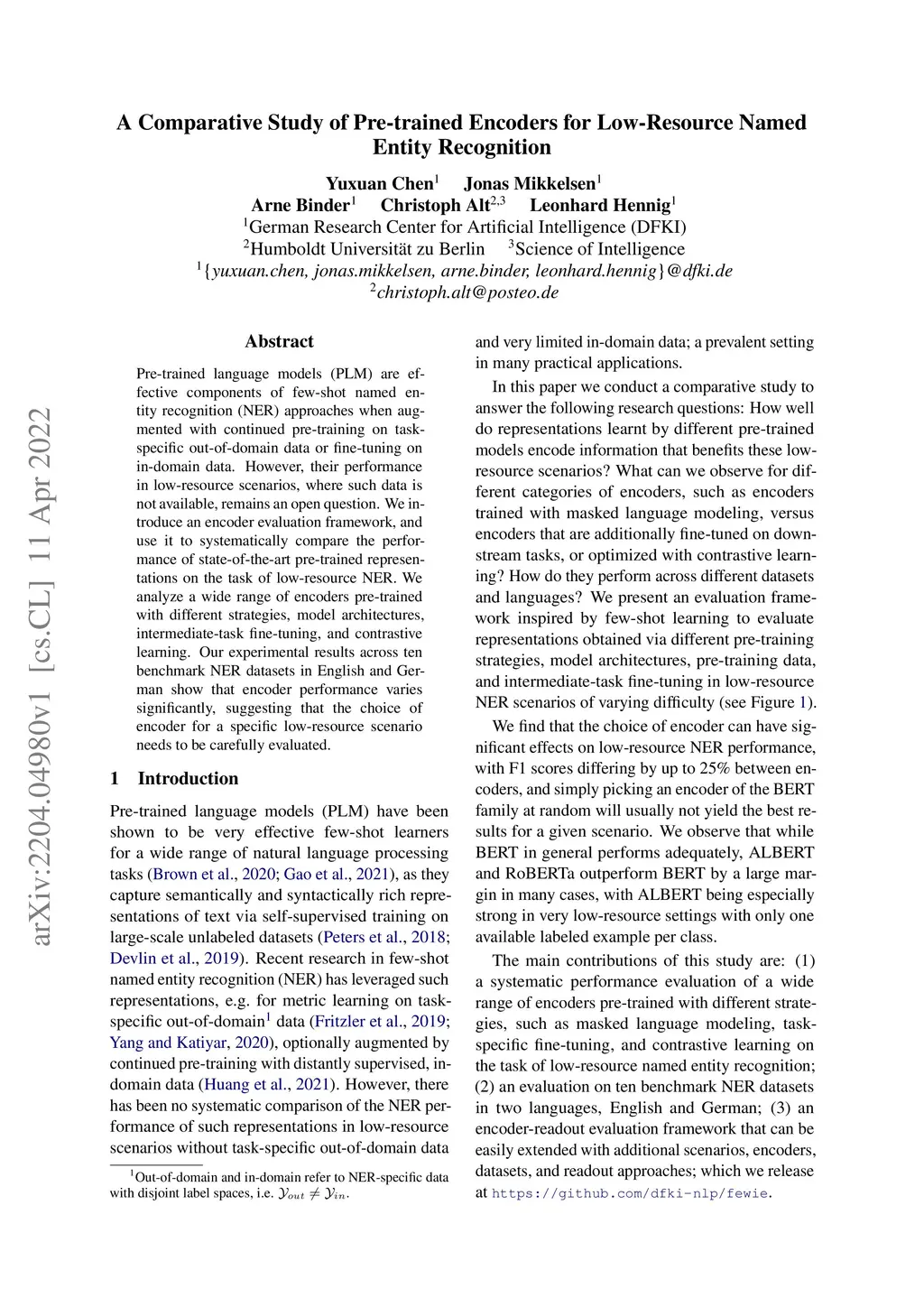 A Comparative Study of Pre-trained Encoders for Low-Resource Named