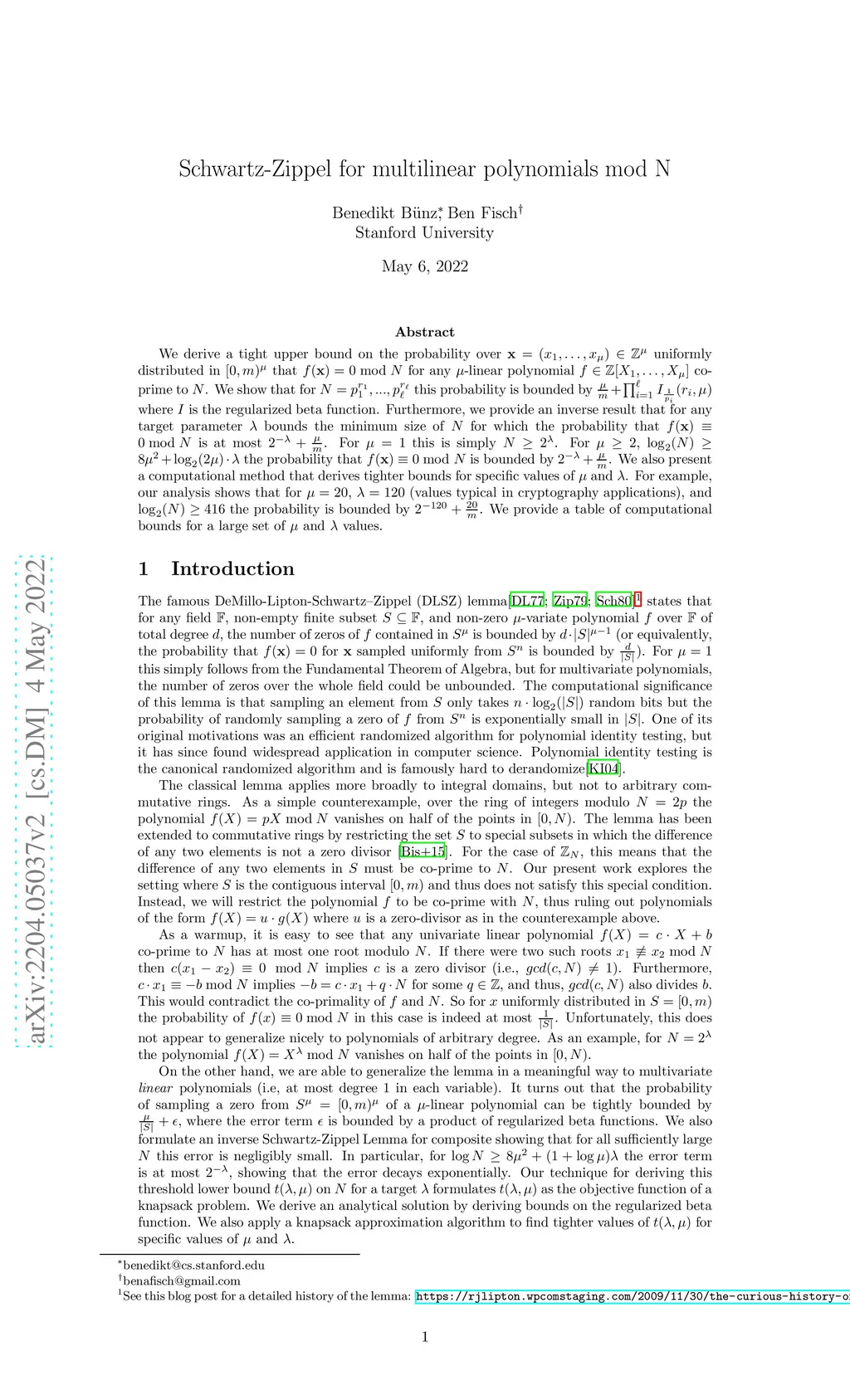 We derive a tight upper bound on the probability over uniformly distributed in $ [0,m)^\mu$ that for any -linear polynomial co-prime to . We show that for this probability is bounded by where is the regularized beta function. Furthermore, we provide an inverse result that for any target parameter bounds the minimum size of for which the probability that is at most . For this is simply . For , the probability that is bounded by . We also present a computational method that derives tighter bounds for specific values of and . For example, our analysis shows that for , (values typical in cryptography applications), and the probability is bounded by $ 2^{-120}+\frac{20}{m}$. We provide a table of computational bounds for a large set of and values.