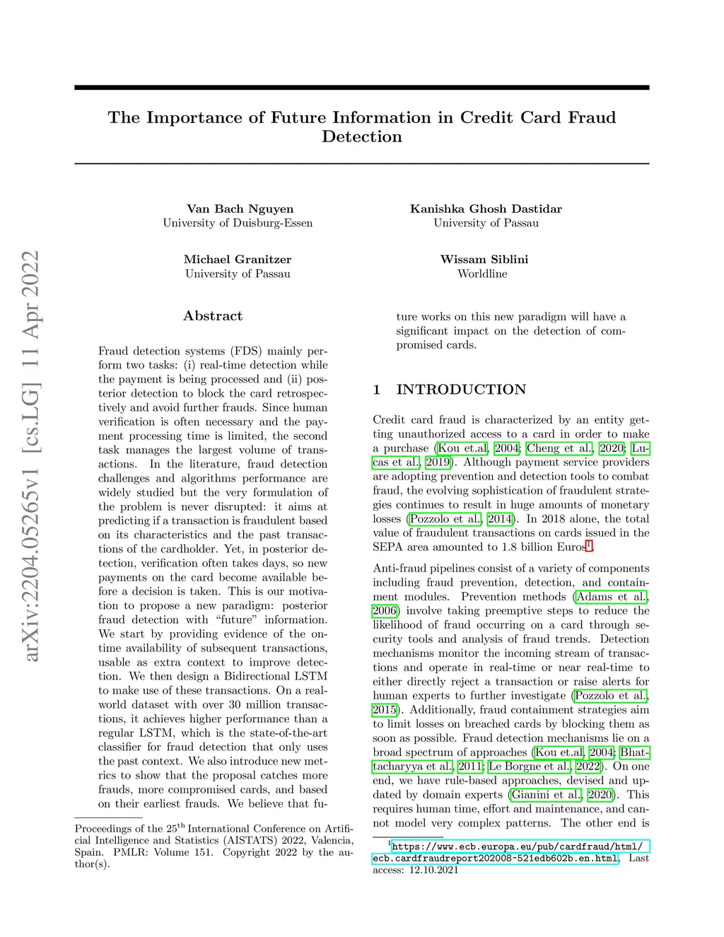Fraud detection systems (FDS) mainly perform two tasks: (i) real-time detection while the payment is being processed and (ii) posterior detection to block the card retrospectively and avoid further frauds. Since human verification is often necessary and the payment processing time is limited, the second task manages the largest volume of transactions. In the literature, fraud detection challenges and algorithms performance are widely studied but the very formulation of the problem is never disrupted: it aims at predicting if a transaction is fraudulent based on its characteristics and the past transactions of the cardholder. Yet, in posterior detection, verification often takes days, so new payments on the card become available before a decision is taken. This is our motivation to propose a new paradigm: posterior fraud detection with "future" information. We start by providing evidence of the on-time availability of subsequent transactions, usable as extra context to improve detection. We then design a Bidirectional LSTM to make use of these transactions. On a real-world dataset with over 30 million transactions, it achieves higher performance than a regular LSTM, which is the state-of-the-art classifier for fraud detection that only uses the past context. We also introduce new metrics to show that the proposal catches more frauds, more compromised cards, and based on their earliest frauds. We believe that future works on this new paradigm will have a significant impact on the detection of compromised cards.