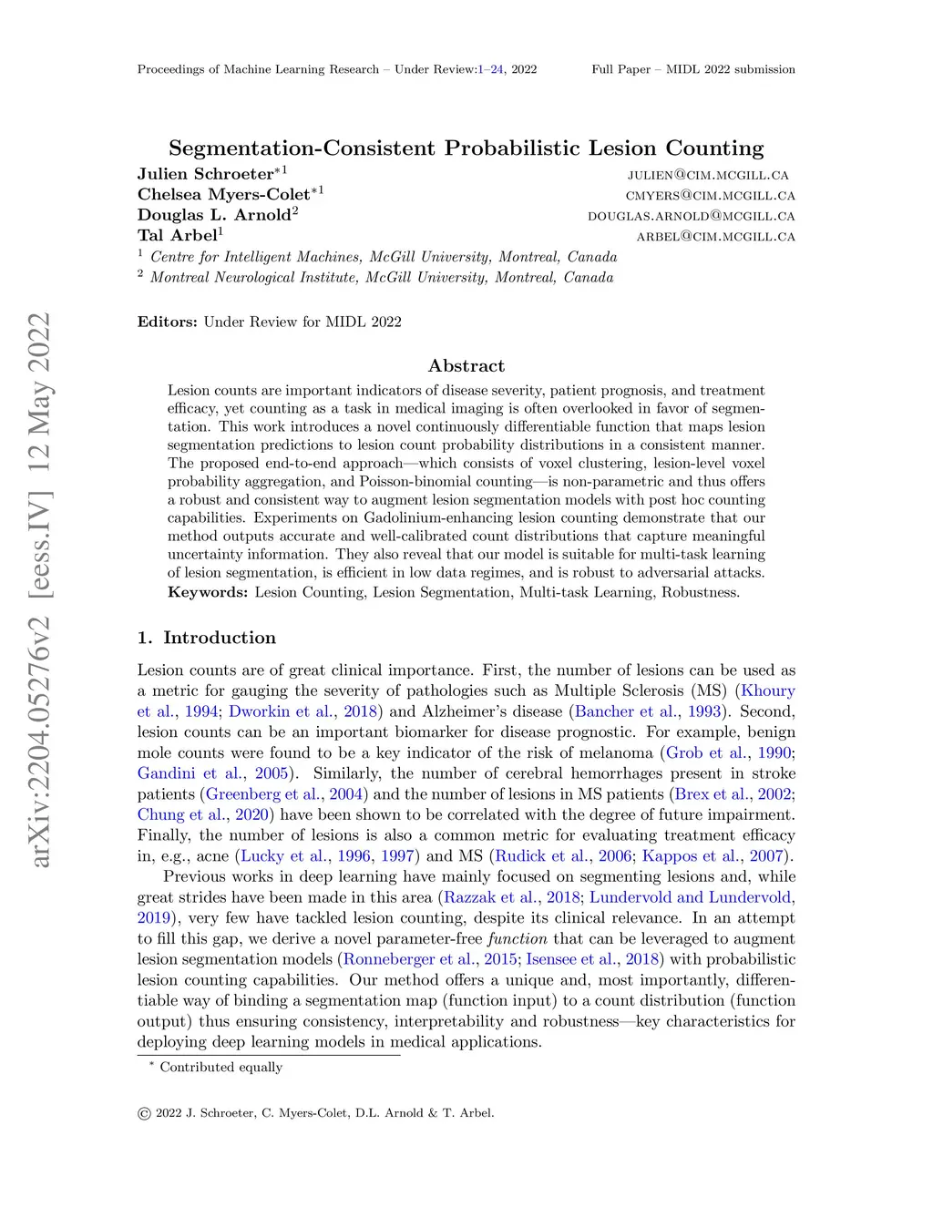 Lesion counts are important indicators of disease severity, patient prognosis, and treatment efficacy, yet counting as a task in medical imaging is often overlooked in favor of segmentation. This work introduces a novel continuously differentiable function that maps lesion segmentation predictions to lesion count probability distributions in a consistent manner. The proposed end-to-end approach--which consists of voxel clustering, lesion-level voxel probability aggregation, and Poisson-binomial counting--is non-parametric and thus offers a robust and consistent way to augment lesion segmentation models with post hoc counting capabilities. Experiments on Gadolinium-enhancing lesion counting demonstrate that our method outputs accurate and well-calibrated count distributions that capture meaningful uncertainty information. They also reveal that our model is suitable for multi-task learning of lesion segmentation, is efficient in low data regimes, and is robust to adversarial attacks.