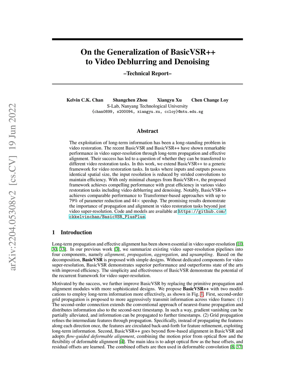 On the Generalization of BasicVSR++ to Video Deblurring and Denoising
