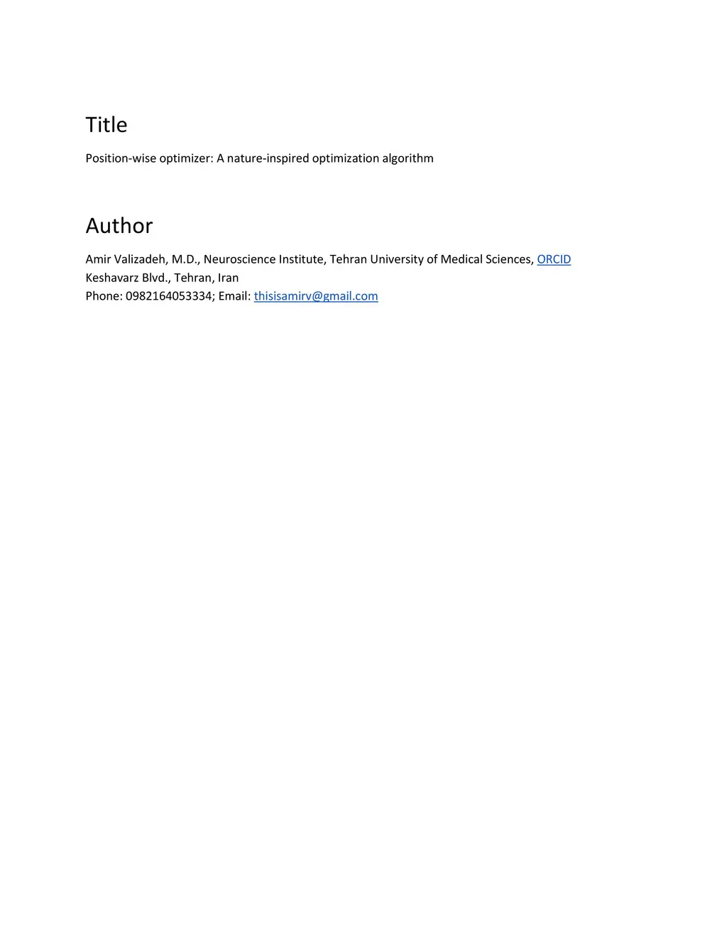 Position-wise optimizer: A nature-inspired optimization algorithm