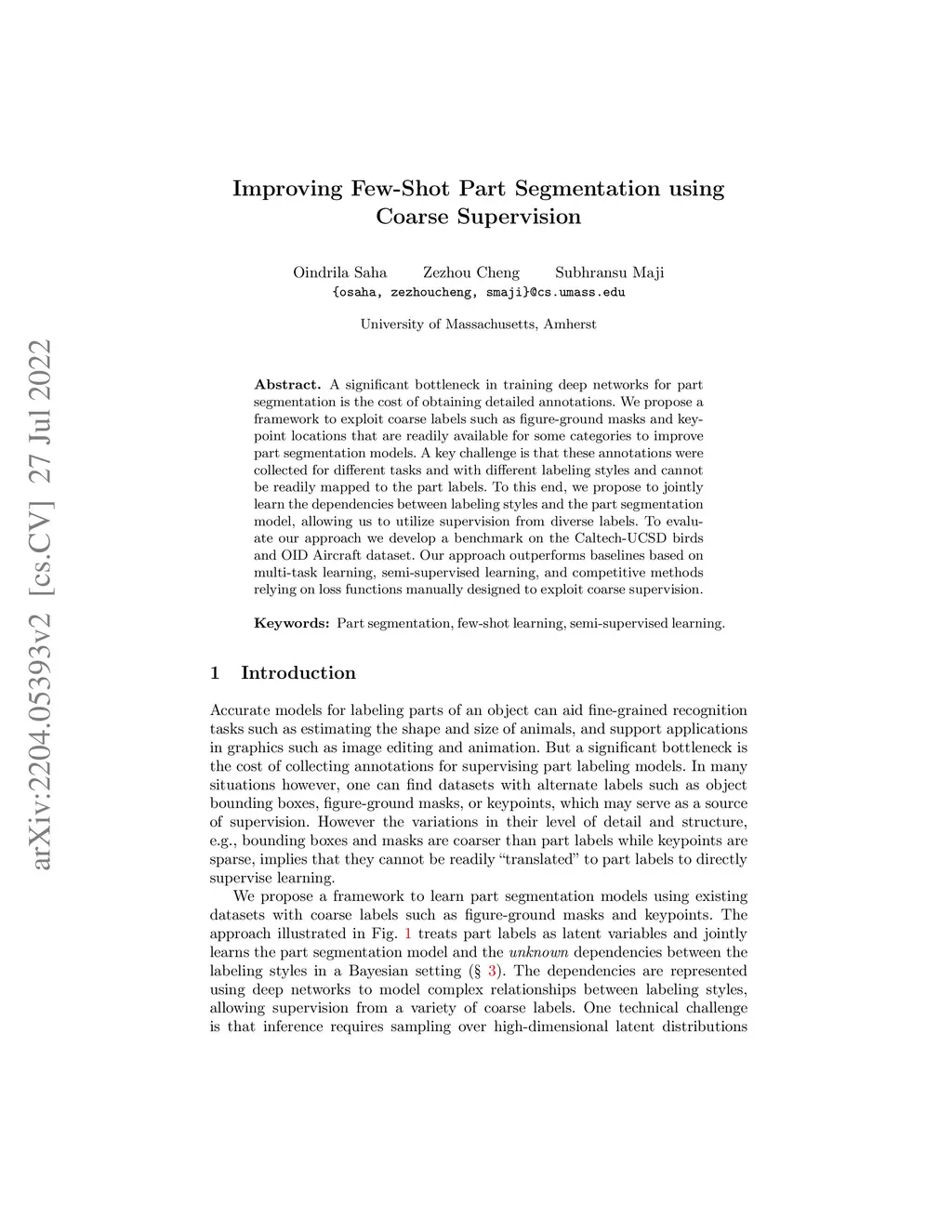 Improving Few-Shot Part Segmentation using Coarse Supervision
