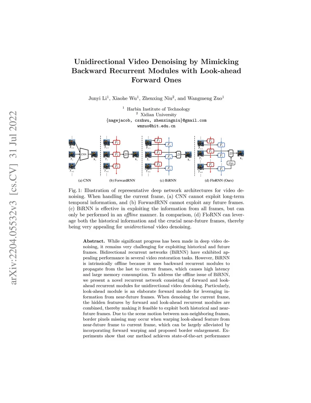 Unidirectional Video Denoising by Mimicking Backward Recurrent Modules