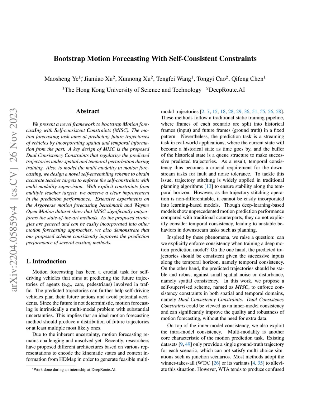 Bootstrap Motion Forecasting With Self-Consistent Constraints