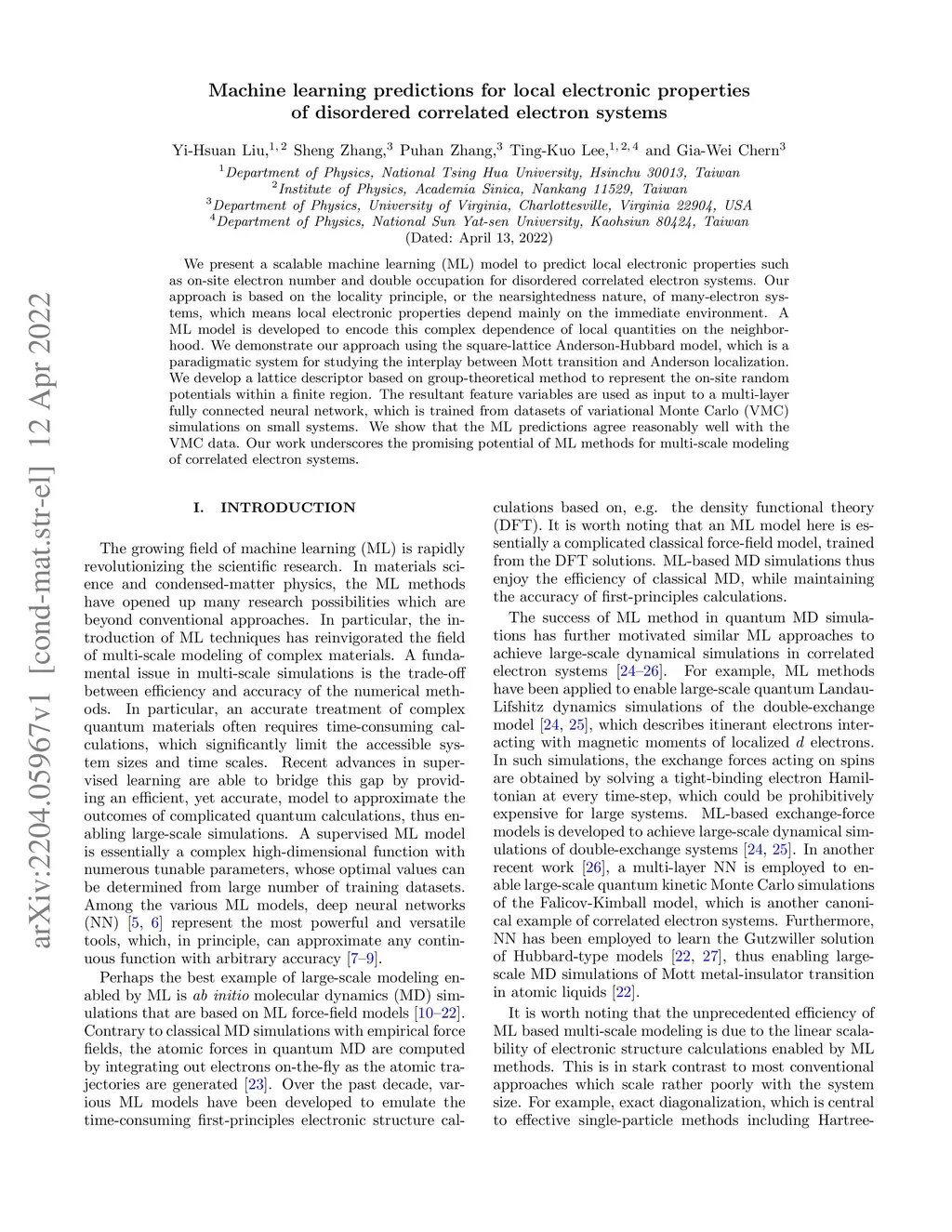 We present a scalable machine learning (ML) model to predict local electronic properties such as on-site electron number and double occupation for disordered correlated electron systems. Our approach is based on the locality principle, or the nearsightedness nature, of many-electron systems, which means local electronic properties depend mainly on the immediate environment. A ML model is developed to encode this complex dependence of local quantities on the neighborhood. We demonstrate our approach using the square-lattice Anderson-Hubbard model, which is a paradigmatic system for studying the interplay between Mott transition and Anderson localization. We develop a lattice descriptor based on group-theoretical method to represent the on-site random potentials within a finite region. The resultant feature variables are used as input to a multi-layer fully connected neural network, which is trained from datasets of variational Monte Carlo (VMC) simulations on small systems. We show that the ML predictions agree reasonably well with the VMC data. Our work underscores the promising potential of ML methods for multi-scale modeling of correlated electron systems.