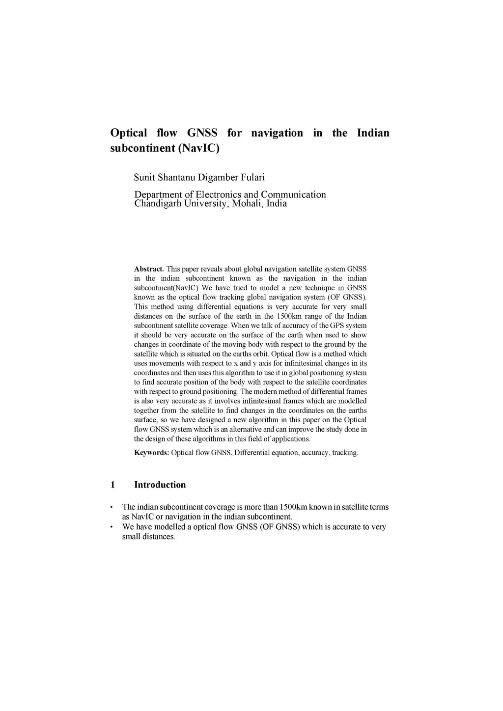 Optical flow GNSS for navigation in the Indian subcontinent (NavIC)