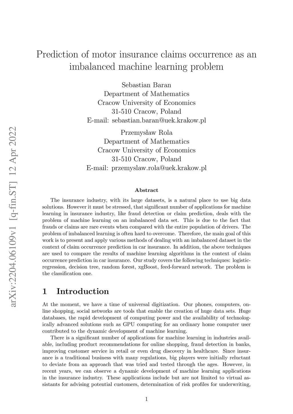 Prediction of motor insurance claims occurrence as an imbalanced machine