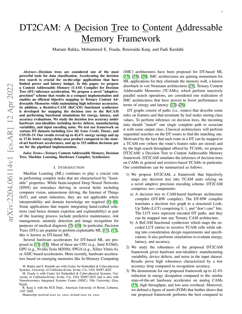 DT2CAM: A Decision Tree to Content Addressable Memory Framework