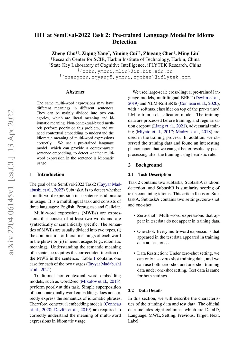 HIT at SemEval-2022 Task 2: Pre-trained Language Model for Idioms