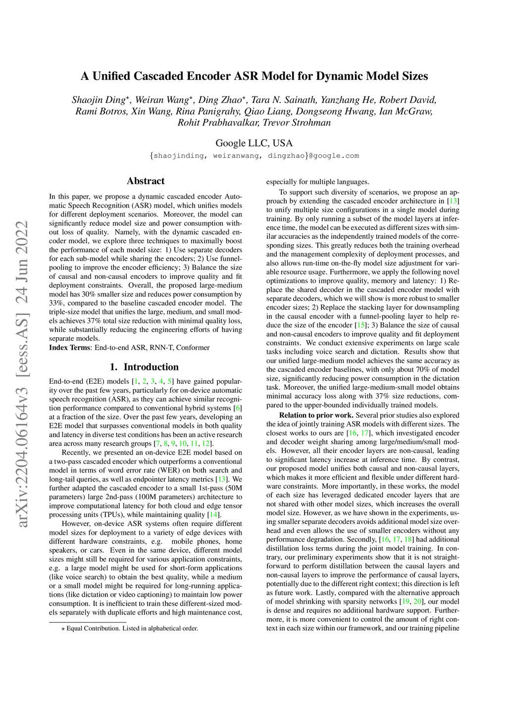 A Unified Cascaded Encoder ASR Model for Dynamic Model Sizes