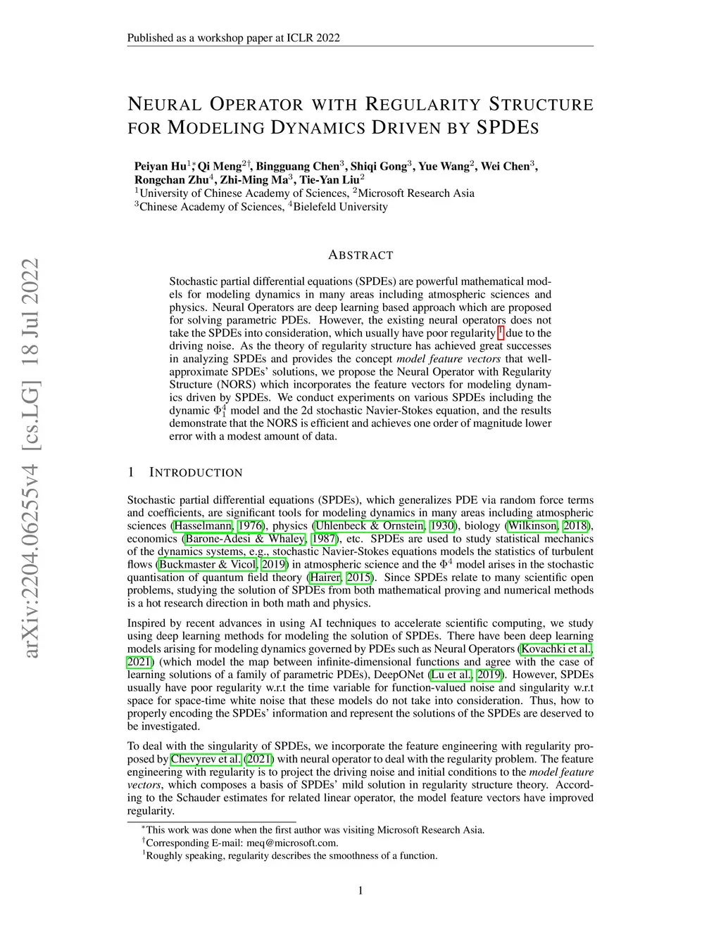 Stochastic partial differential equations (SPDEs) are significant tools for modeling dynamics in many areas including atmospheric sciences and physics. Neural Operators, generations of neural networks with capability of learning maps between infinite-dimensional spaces, are strong tools for solving parametric PDEs. However, they lack the ability to modeling SPDEs which usually have poor regularity due to the driving noise. As the theory of regularity structure has achieved great successes in analyzing SPDEs and provides the concept model feature vectors that well-approximate SPDEs' solutions, we propose the Neural Operator with Regularity Structure (NORS) which incorporates the feature vectors for modeling dynamics driven by SPDEs. We conduct experiments on various of SPDEs including the dynamic Phi41 model and the 2d stochastic Navier-Stokes equation, and the results demonstrate that the NORS is resolution-invariant, efficient, and achieves one order of magnitude lower error with a modest amount of data.