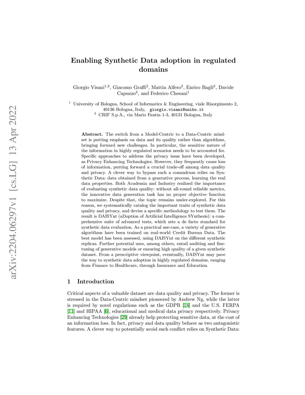 The switch from a Model-Centric to a Data-Centric mindset is putting emphasis on data and its quality rather than algorithms, bringing forward new challenges. In particular, the sensitive nature of the information in highly regulated scenarios needs to be accounted for. Specific approaches to address the privacy issue have been developed, as Privacy Enhancing Technologies. However, they frequently cause loss of information, putting forward a crucial trade-off among data quality and privacy. A clever way to bypass such a conundrum relies on Synthetic Data: data obtained from a generative process, learning the real data properties. Both Academia and Industry realized the importance of evaluating synthetic data quality: without all-round reliable metrics, the innovative data generation task has no proper objective function to maximize. Despite that, the topic remains under-explored. For this reason, we systematically catalog the important traits of synthetic data quality and privacy, and devise a specific methodology to test them. The result is DAISYnt (aDoption of Artificial Intelligence SYnthesis): a comprehensive suite of advanced tests, which sets a de facto standard for synthetic data evaluation. As a practical use-case, a variety of generative algorithms have been trained on real-world Credit Bureau Data. The best model has been assessed, using DAISYnt on the different synthetic replicas. Further potential uses, among others, entail auditing and fine-tuning of generative models or ensuring high quality of a given synthetic dataset. From a prescriptive viewpoint, eventually, DAISYnt may pave the way to synthetic data adoption in highly regulated domains, ranging from Finance to Healthcare, through Insurance and Education.