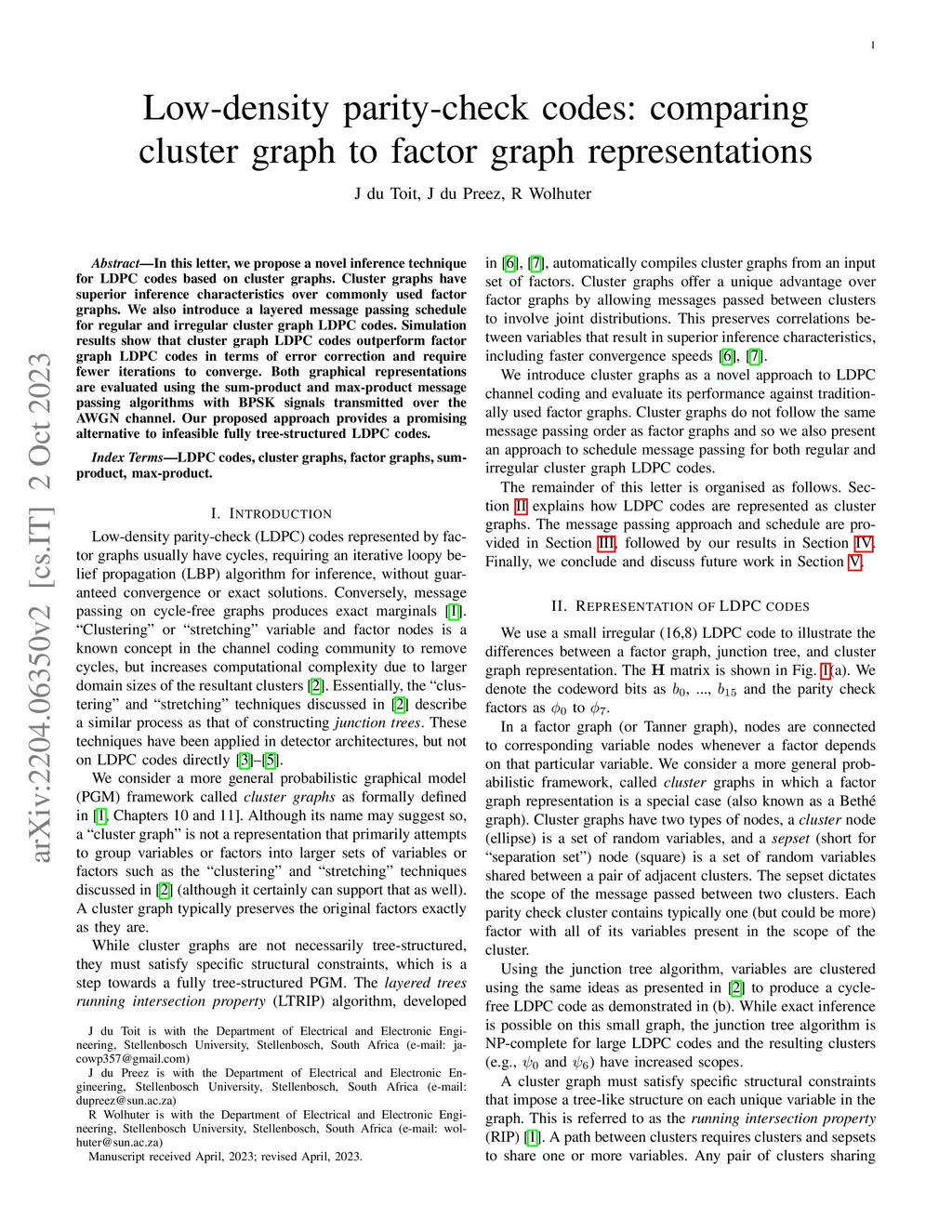 LDPC codes: comparing cluster graphs to factor graphs