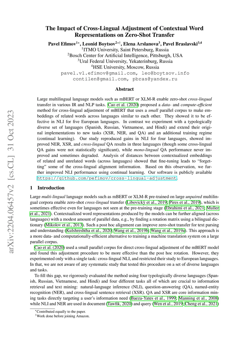 The Impact of Cross-Lingual Adjustment of Contextual Word