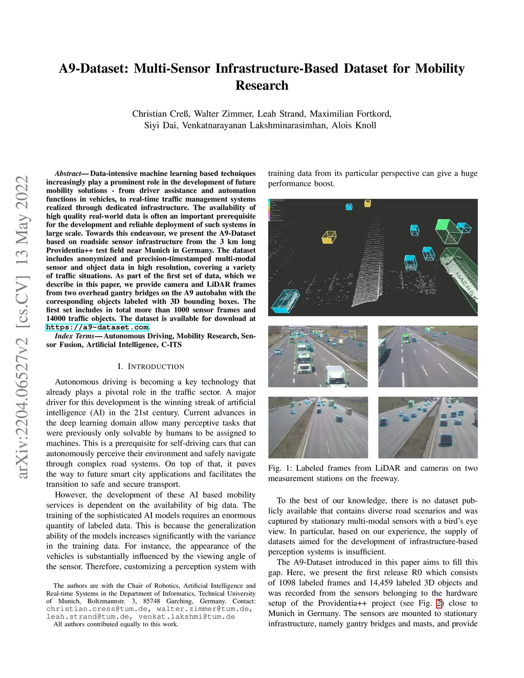 A9-Dataset: Multi-Sensor Infrastructure-Based Dataset for Mobility Research