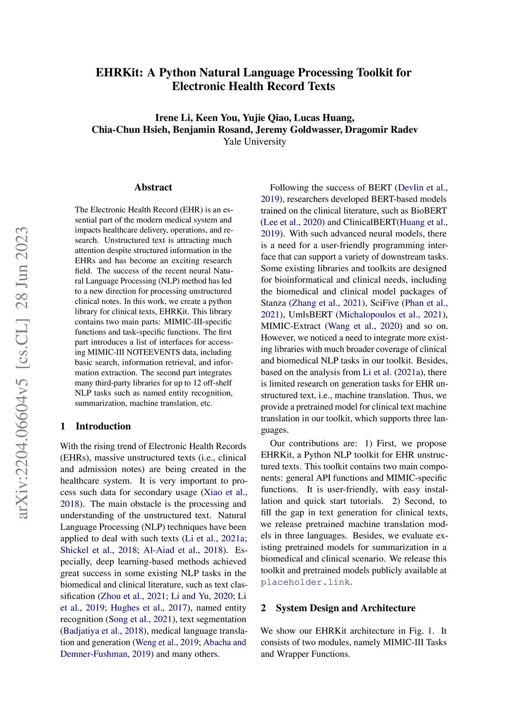 EHRKit: A Python Natural Language Processing Toolkit for Electronic