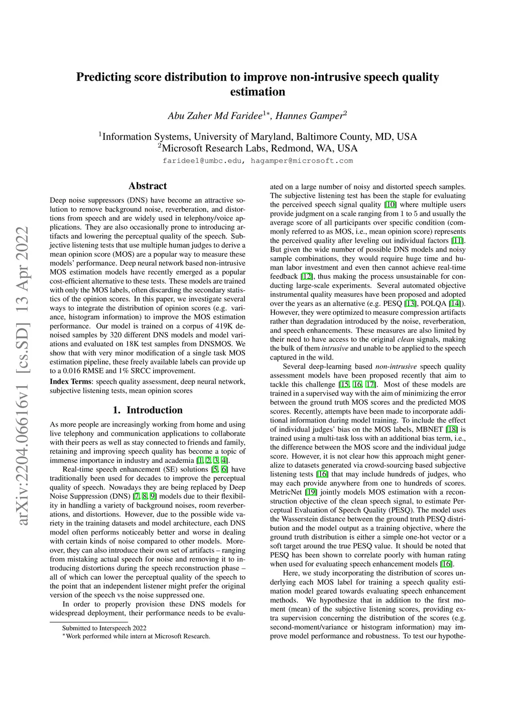 Deep noise suppressors (DNS) have become an attractive solution to remove background noise, reverberation, and distortions from speech and are widely used in telephony/voice applications. They are also occasionally prone to introducing artifacts and lowering the perceptual quality of the speech. Subjective listening tests that use multiple human judges to derive a mean opinion score (MOS) are a popular way to measure these models' performance. Deep neural network based non-intrusive MOS estimation models have recently emerged as a popular cost-efficient alternative to these tests. These models are trained with only the MOS labels, often discarding the secondary statistics of the opinion scores. In this paper, we investigate several ways to integrate the distribution of opinion scores (e.g. variance, histogram information) to improve the MOS estimation performance. Our model is trained on a corpus of 419K denoised samples by 320 different DNS models and model variations and evaluated on 18K test samples from DNSMOS. We show that with very minor modification of a single task MOS estimation pipeline, these freely available labels can provide up to a 0.016 RMSE and 1% SRCC improvement.
