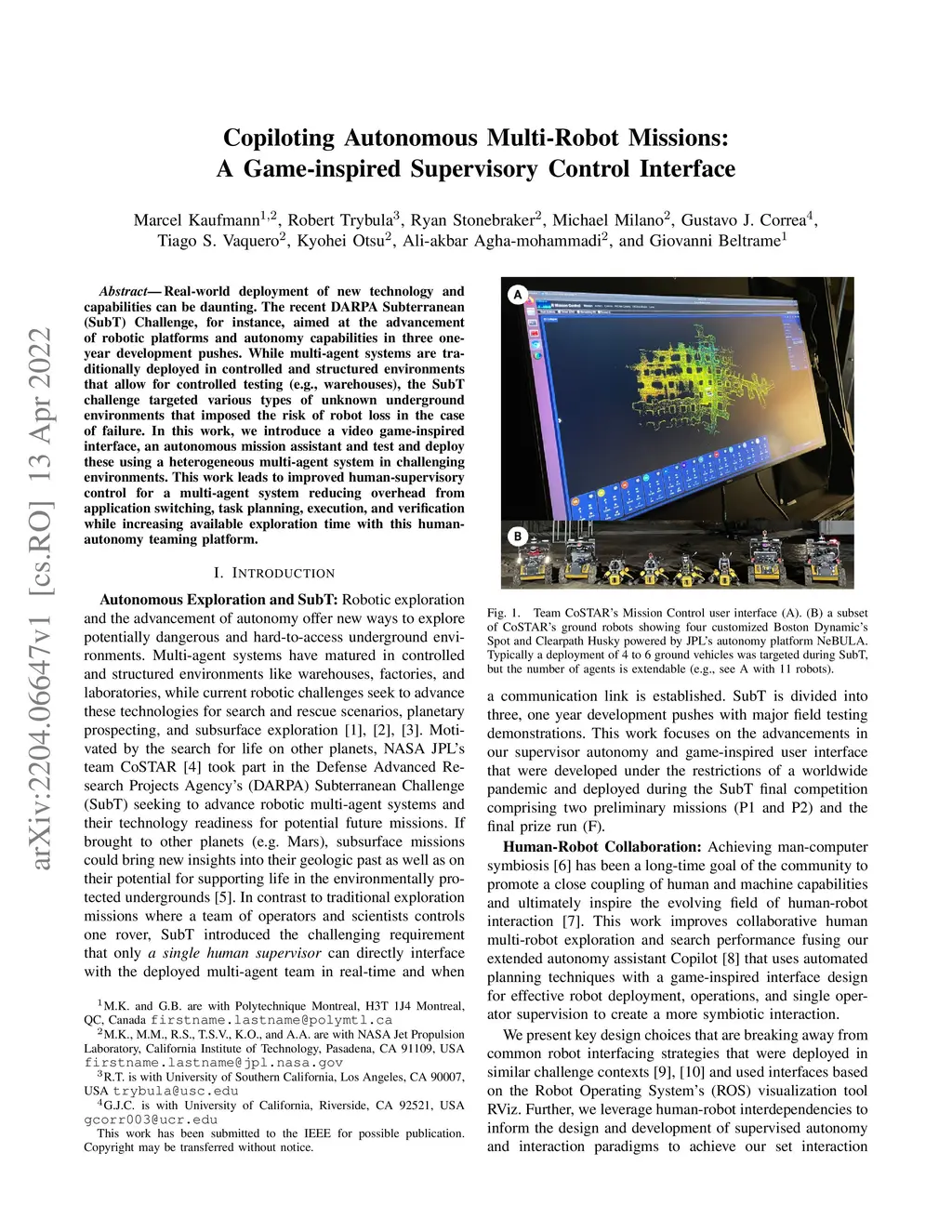 Real-world deployment of new technology and capabilities can be daunting. The recent DARPA Subterranean (SubT) Challenge, for instance, aimed at the advancement of robotic platforms and autonomy capabilities in three one-year development pushes. While multi-agent systems are traditionally deployed in controlled and structured environments that allow for controlled testing (e.g., warehouses), the SubT challenge targeted various types of unknown underground environments that imposed the risk of robot loss in the case of failure. In this work, we introduce a video game-inspired interface, an autonomous mission assistant, and test and deploy these using a heterogeneous multi-agent system in challenging environments. This work leads to improved human-supervisory control for a multi-agent system reducing overhead from application switching, task planning, execution, and verification while increasing available exploration time with this human-autonomy teaming platform.