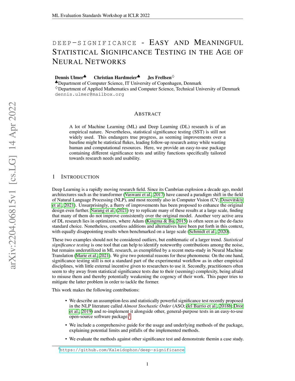 deep-significance - Easy and Meaningful Statistical Significance Testing