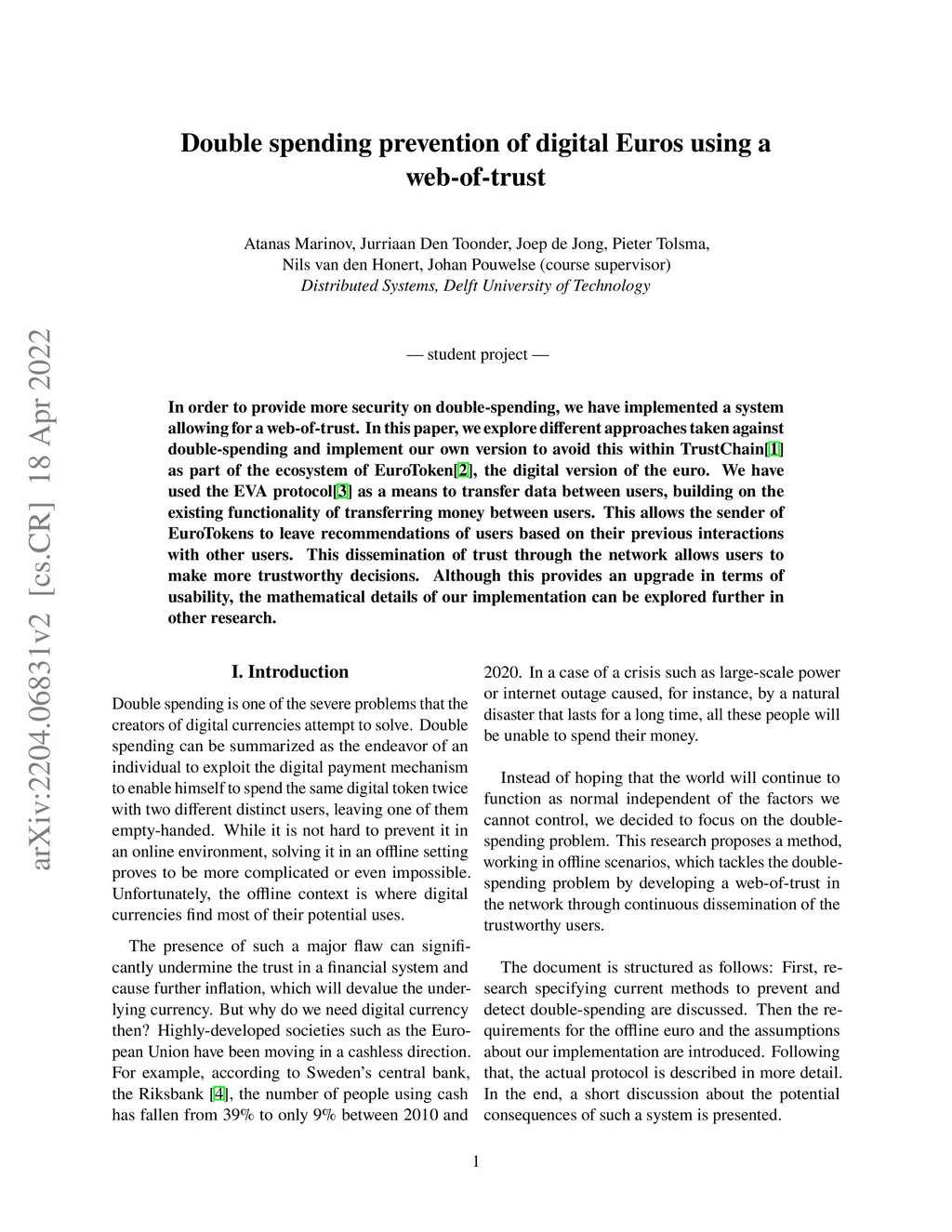 Double spending prevention of digital Euros using a web-of-trust
