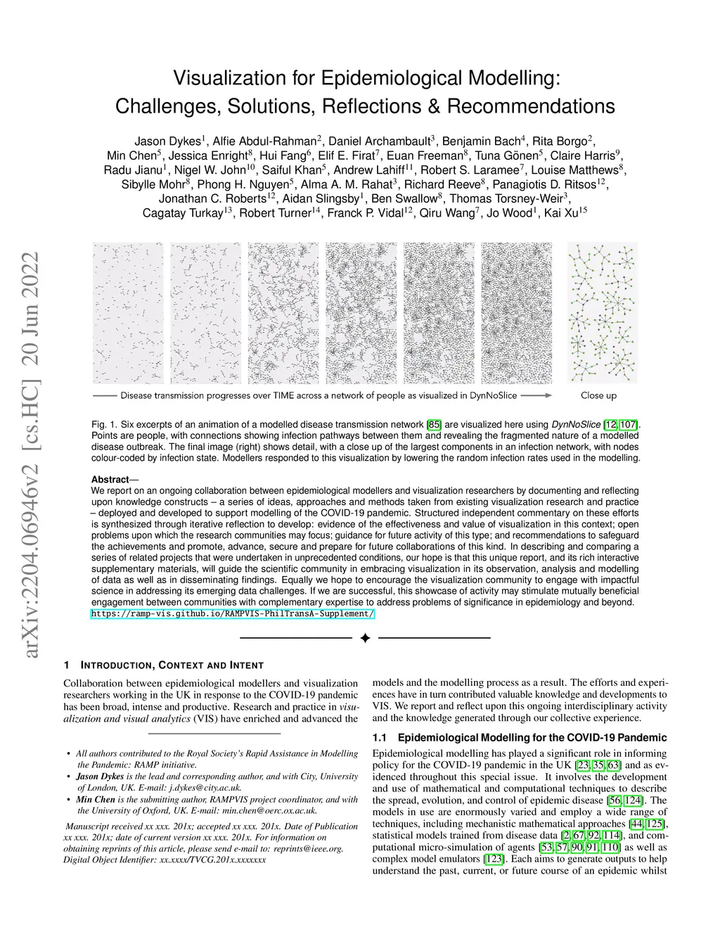 We report on an ongoing collaboration between epidemiological modellers and visualization researchers by documenting and reflecting upon knowledge constructs -- a series of ideas, approaches and methods taken from existing visualization research and practice -- deployed and developed to support modelling of the COVID-19 pandemic. Structured independent commentary on these efforts is synthesized through iterative reflection to develop: evidence of the effectiveness and value of visualization in this context; open problems upon which the research communities may focus; guidance for future activity of this type; and recommendations to safeguard the achievements and promote, advance, secure and prepare for future collaborations of this kind. In describing and comparing a series of related projects that were undertaken in unprecedented conditions, our hope is that this unique report, and its rich interactive supplementary materials, will guide the scientific community in embracing visualization in its observation, analysis and modelling of data as well as in disseminating findings. Equally we hope to encourage the visualization community to engage with impactful science in addressing its emerging data challenges. If we are successful, this showcase of activity may stimulate mutually beneficial engagement between communities with complementary expertise to address problems of significance in epidemiology and beyond. https://ramp-vis.github.io/RAMPVIS-PhilTransA-Supplement/