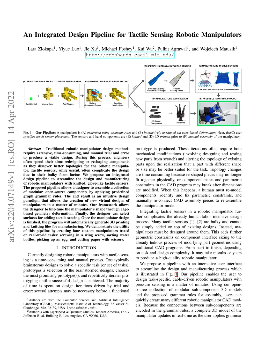 An Integrated Design Pipeline for Tactile Sensing Robotic Manipulators