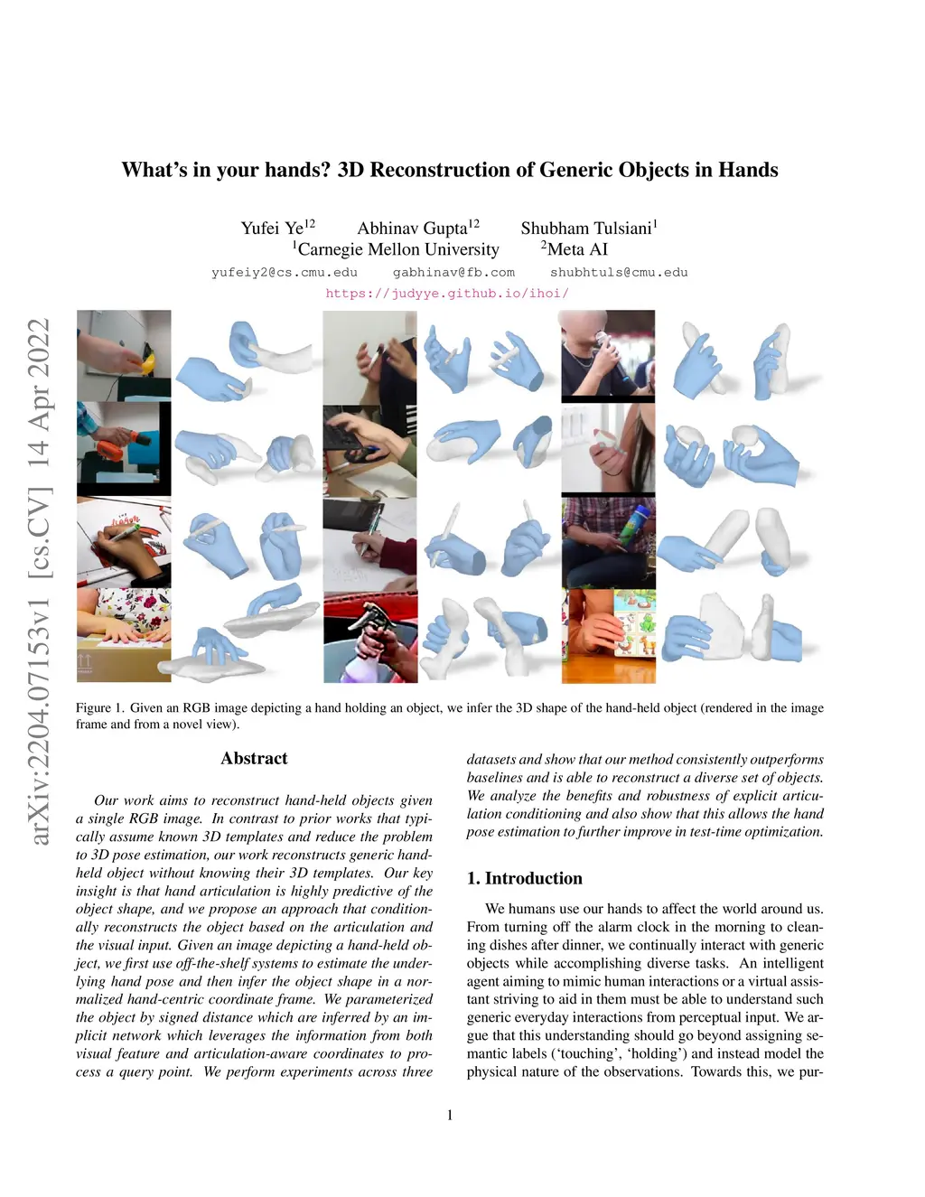 What's in your hands? 3D Reconstruction of Generic Objects in Hands