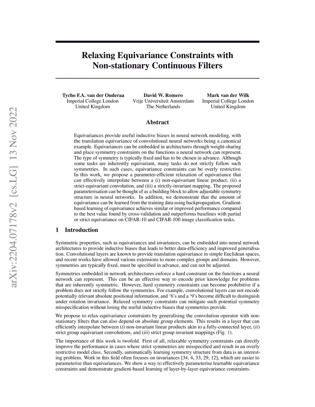 Relaxing Equivariance Constraints with Non-stationary Continuous Filters