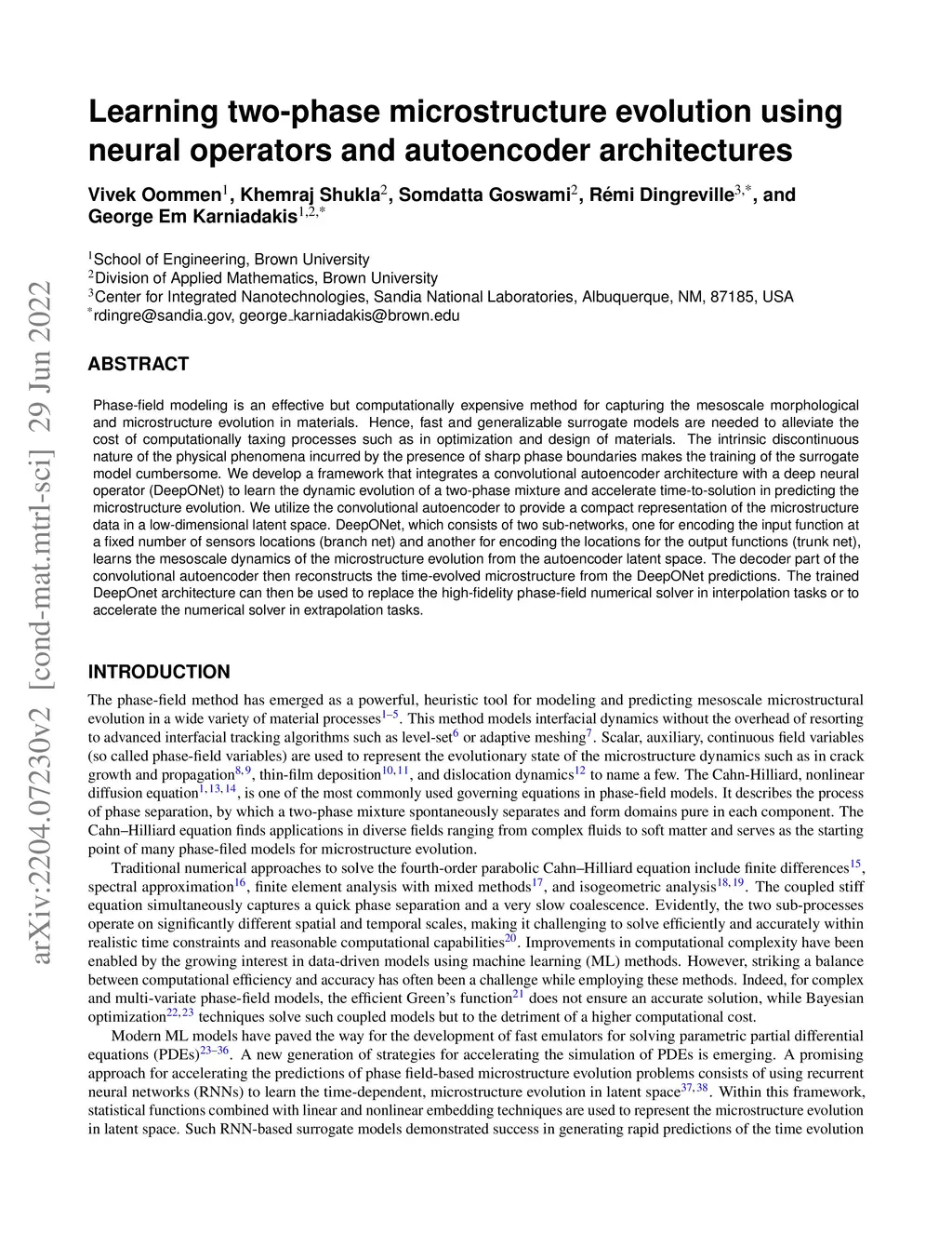 Learning two-phase microstructure evolution using neural operators and