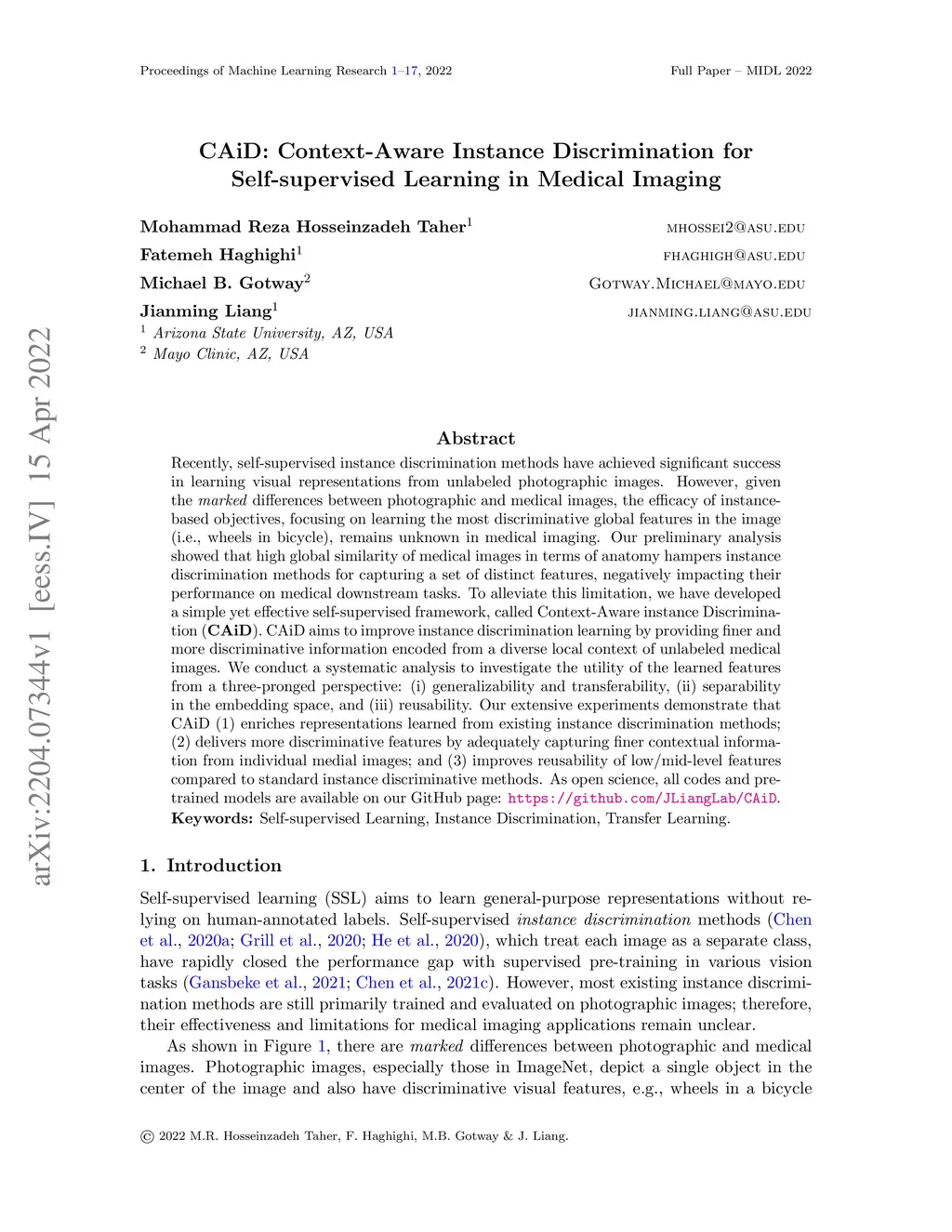 CAiD: Context-Aware Instance Discrimination for Self-supervised Learning